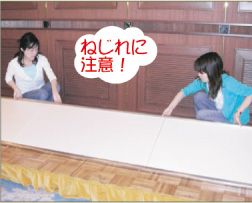 | 7)裏面から表にゆっくりと ねじらないように裏返す。 (二人作業で) |