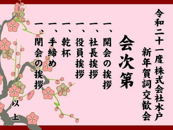 創立記念祝賀会・懇親会・歓送迎会・同窓会・入社式など大切な催しを、より印象深く、華やかに…。 色彩豊かな吊看板・式次第のデザインをご用意いたしました。